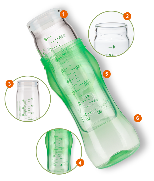 - 為避免玻璃奶瓶破損,外出攜帶時請務必置入綠色護套內。